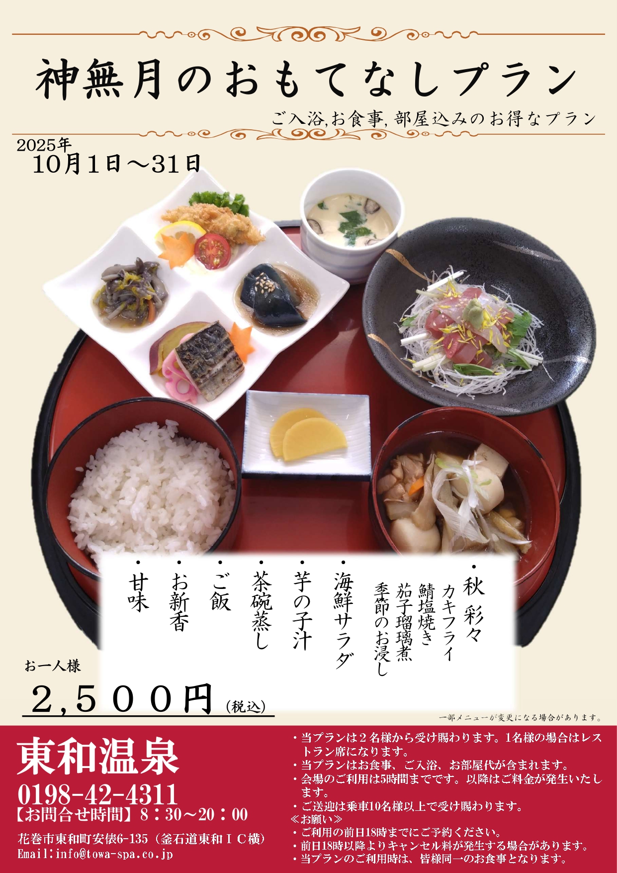 神無月のおもてなしプラン: 2,500円(税込)